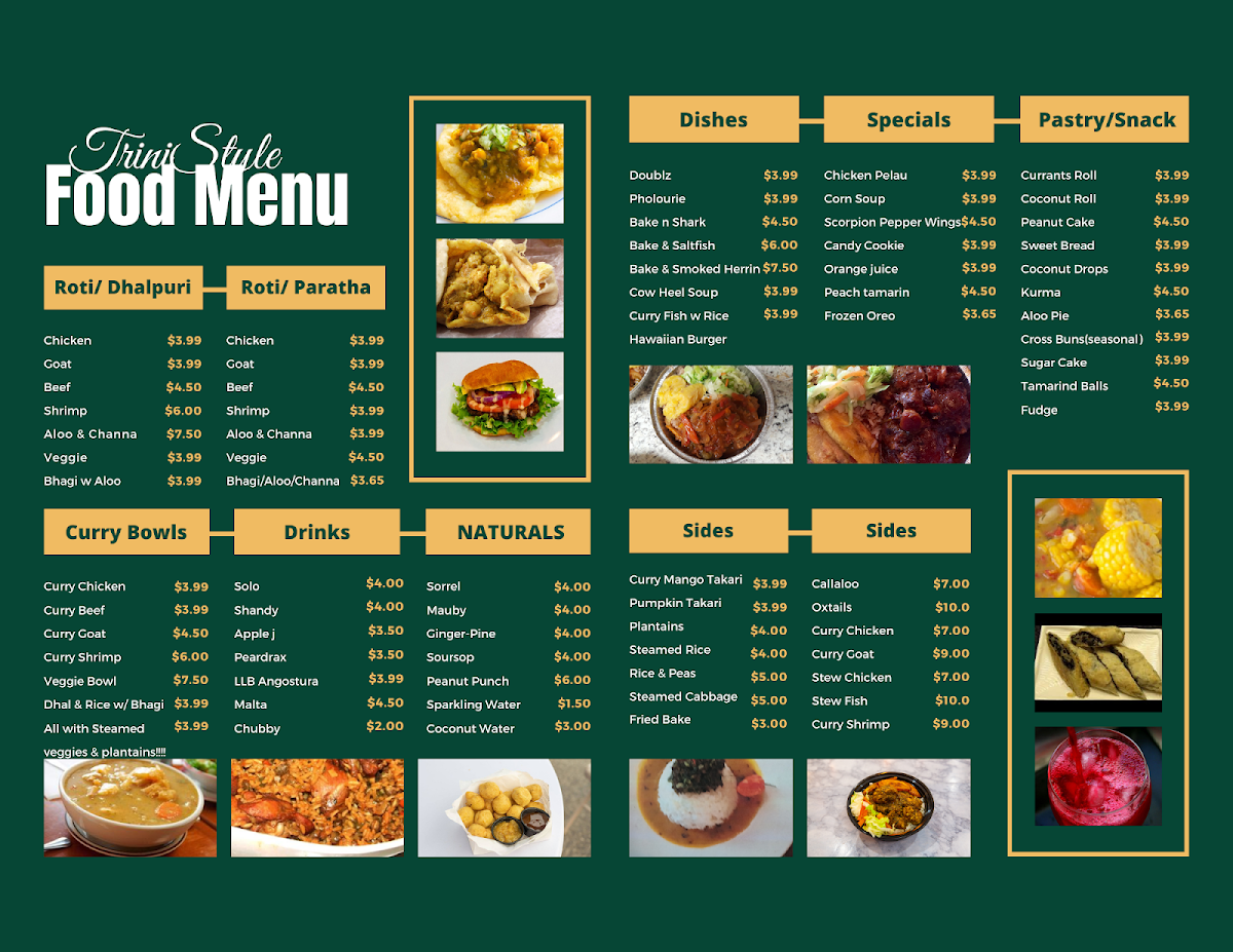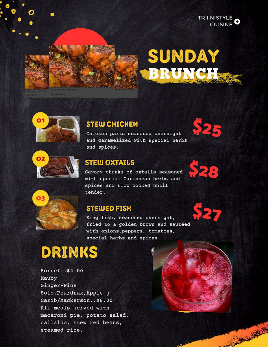 When you step into Trinistyle Cuisine, you’re not just visiting a restaurant, you’re diving into a vibrant culinary journey. Located at 2159 W Century Blvd in Los Angeles, CA, this spot brings a fresh twist to flavors with a diverse menu that’s perfect for any craving. The Trinistyle Cuisine Menu offers a blend of traditional favorites with modern flair, featuring dishes crafted from the finest local ingredients. Whether you're here for a quick bite or a relaxed meal, there's something for everyone-rich, savory dishes for meat lovers, and plenty of options for those craving something light and fresh. The comforting warmth of each dish is paired with a variety of vibrant spices that elevate each bite. Each plate tells a story, offering a taste of something truly unique in the heart of Los Angeles.